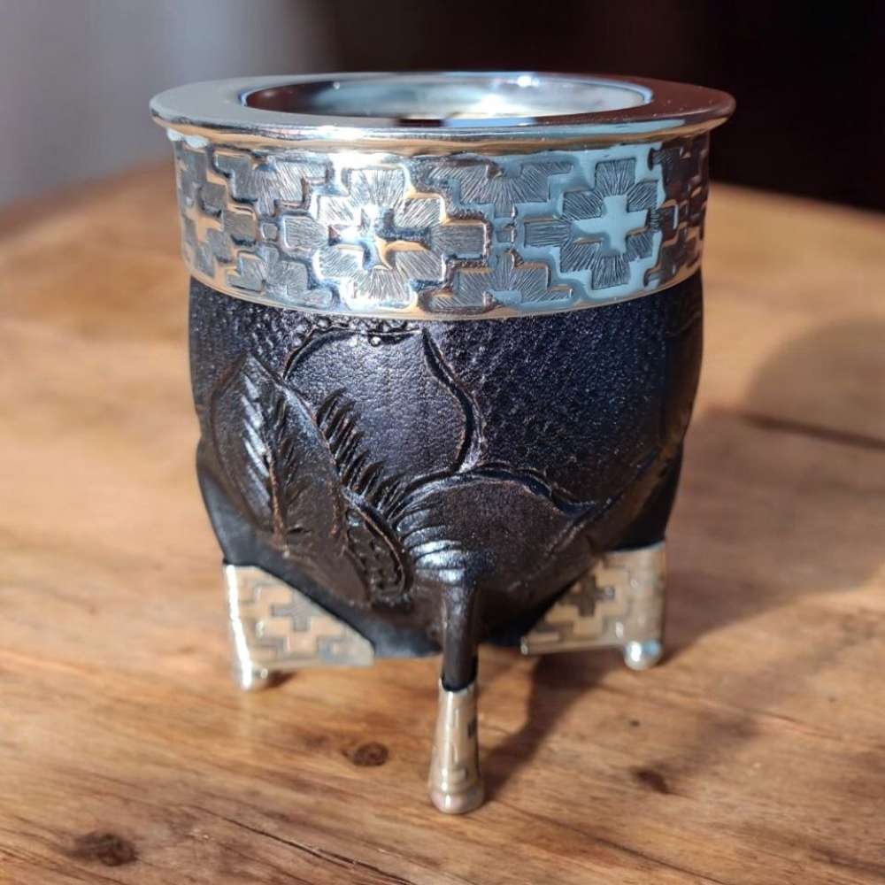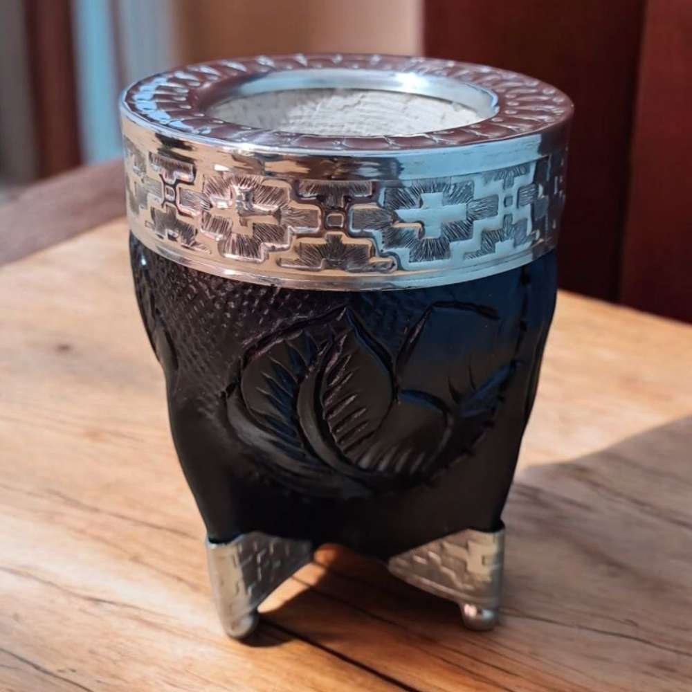 El Mate Imperial de Cuero Labrado con Virola de Alpaca Cincelada y Patitas con Bolitas es una pieza de alta gama, diseñada para quienes buscan calidad, tradición y arte en un solo producto.